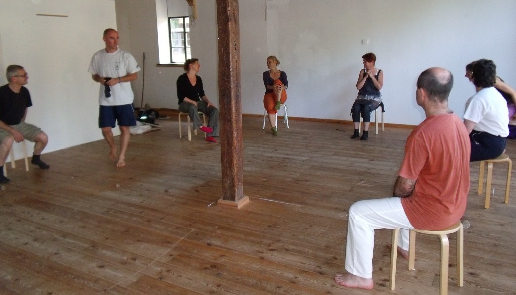 Le travail se pratique assis sur un tabouret, debout, en mouvement et parfois allongé. Des étirements doux préparent le corps pour que le souffle puisse mieux l’habiter. Des séquences de mouvements simples, seul ou avec l’aide d’un.e partenaire, et un travail d’exploration des sons permettent de stimuler la respiration et de l’expérimenter sans la forcer. Peu à peu se découvrent les lois de son fonctionnement naturel. La sensibilité et la conscience corporelle se développent.